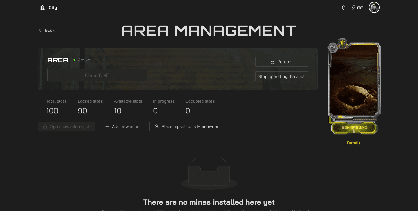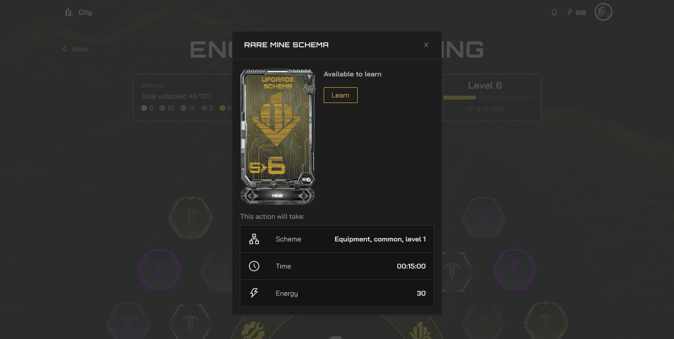 A player‑first interface designed to make deep game mechanics — from resource management to NFT interactions — feel intuitive and engaging. Every element, from information architecture to visual feedback, was crafted to reduce cognitive load and enhance the overall user experience within the sci‑fi metaverse.