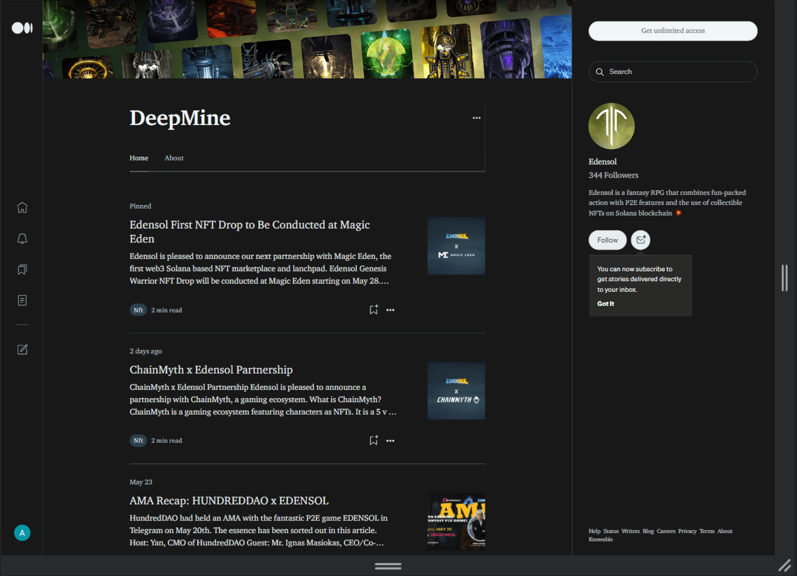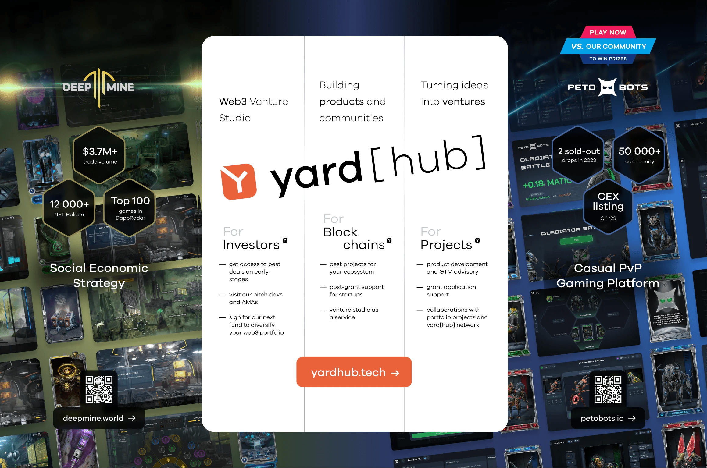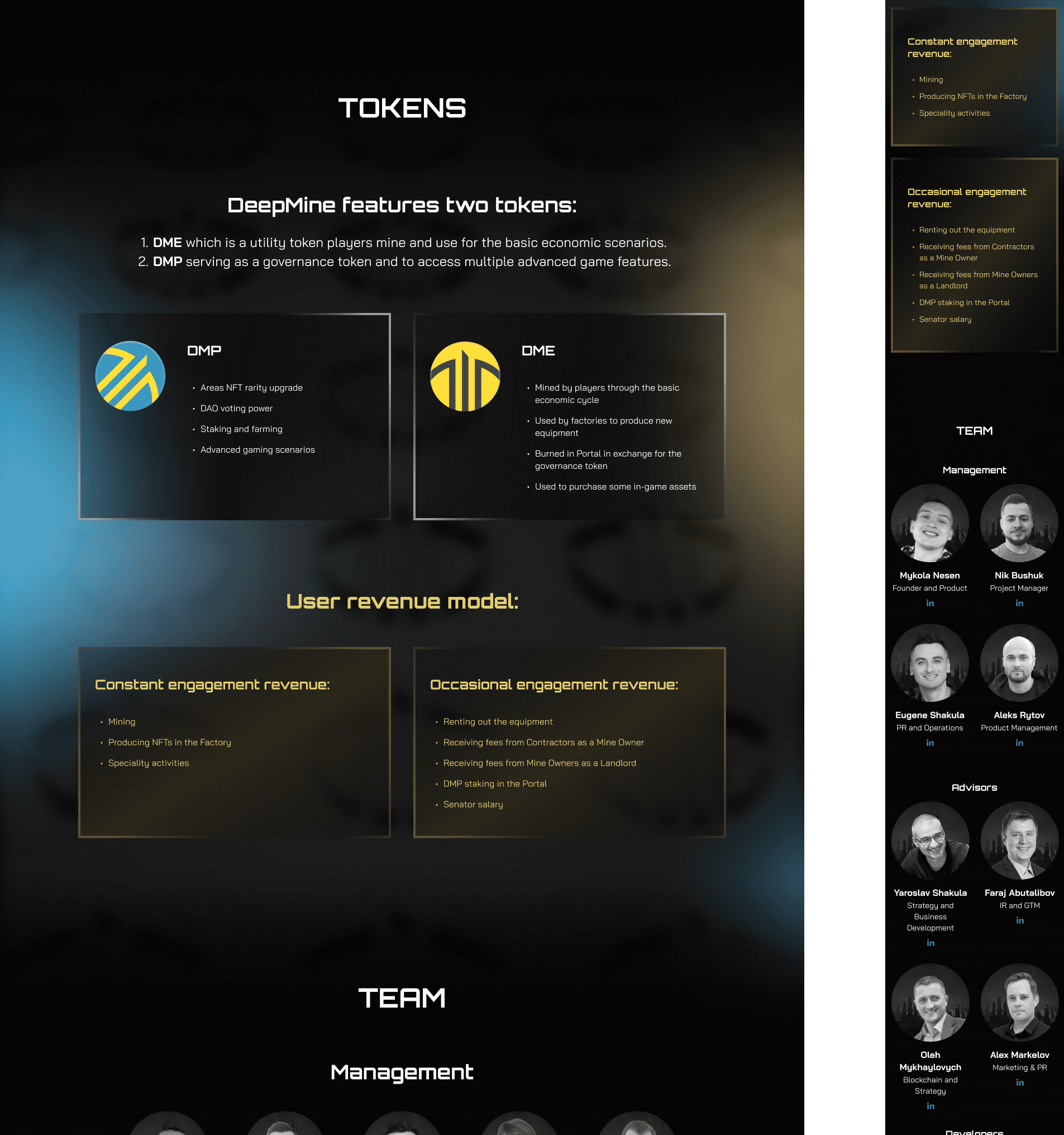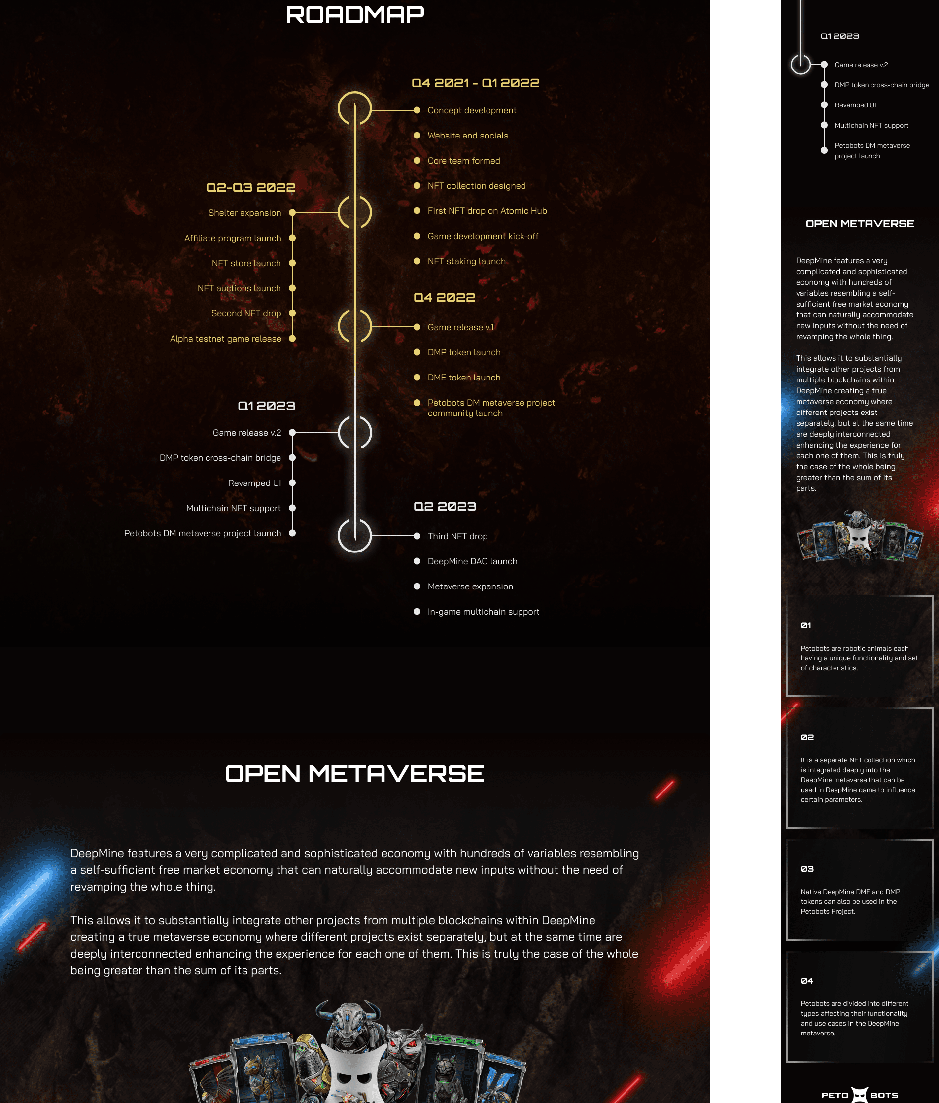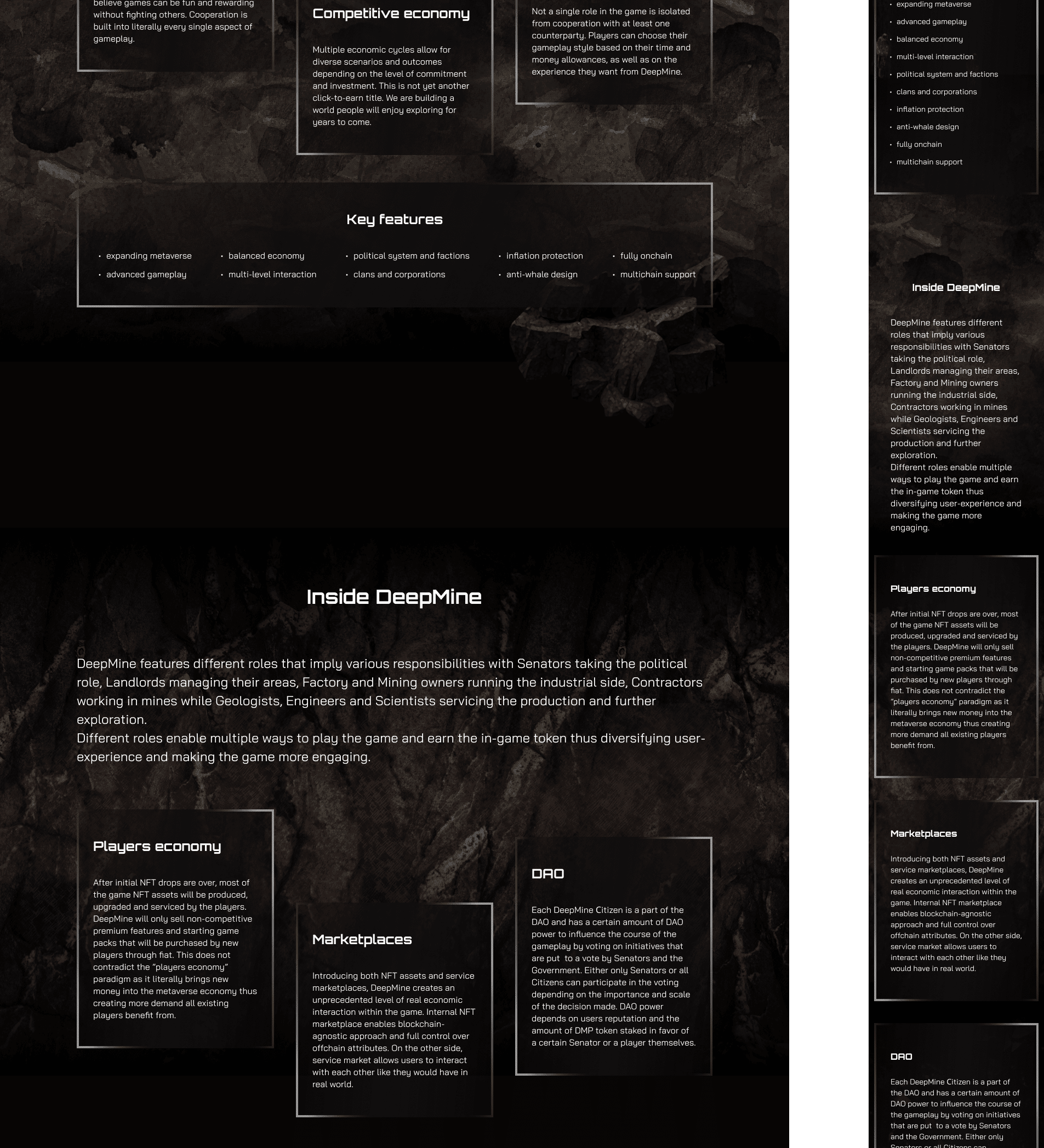 A high‑conversion web interface built to drive user acquisition and engagement for a complex blockchain game. The design strategically balances immersive world‑building with clear value propositions, guiding visitors from initial interest to concrete actions: exploring the game, subscribing for updates, and anticipating NFT drops—all within a cohesive sci‑fi aesthetic that supports the product’s strategic positioning.