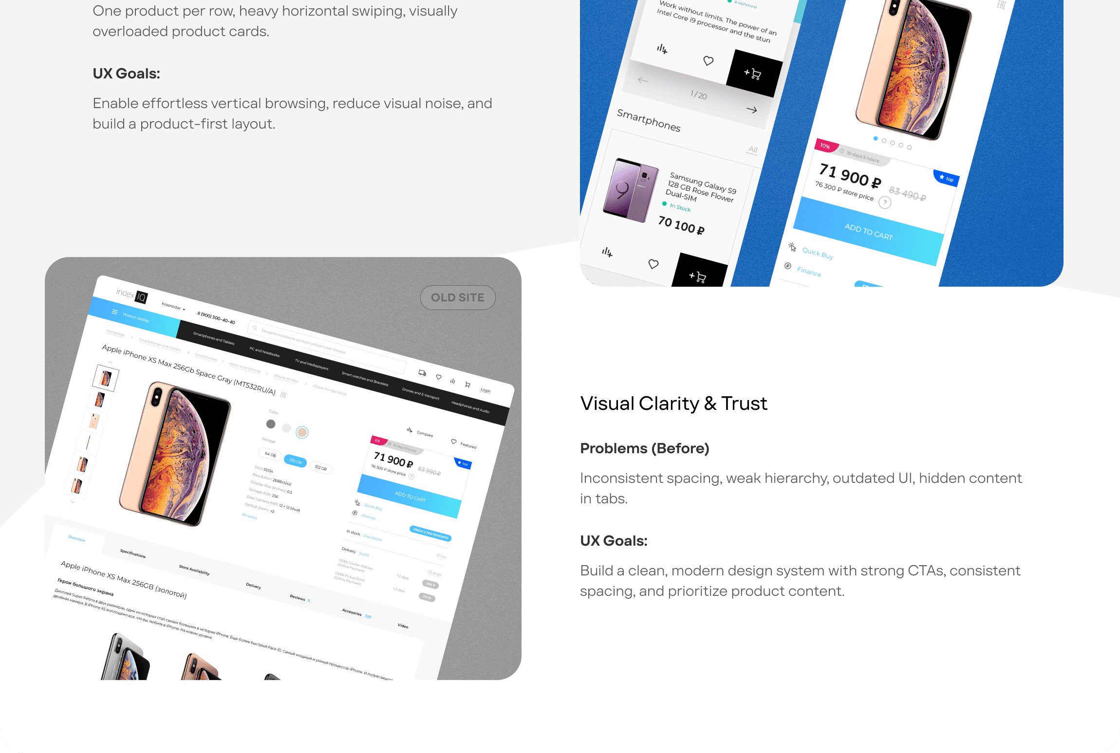 The original experience made it difficult for users to explore categories, understand product details, and make confident purchase decisions — especially on mobile, where the journey felt fragmented and visually overloaded.